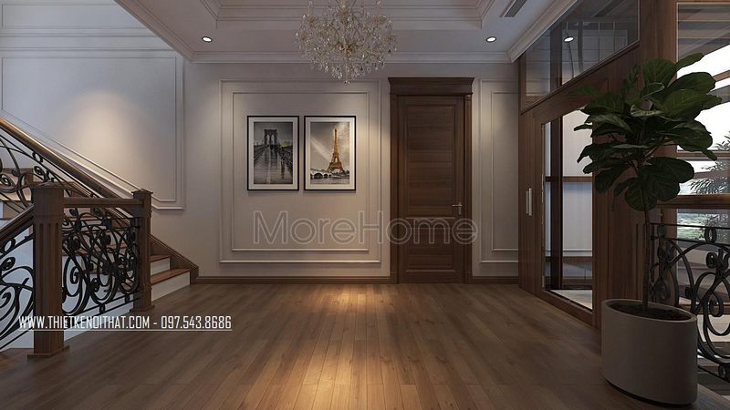 Mẫu cửa gỗ óc chó có phong cách tân cổ điển sang trọng, khiến mọi người không thể bỏ qua những ánh nhìn của nó.