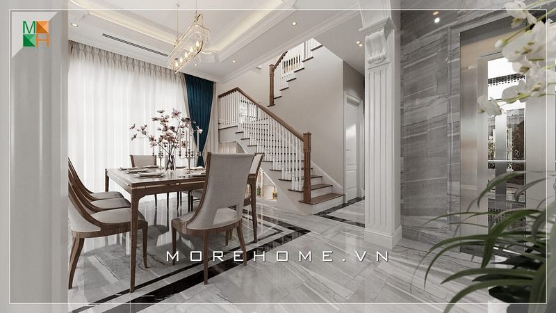 Mẫu bàn ăn gỗ cùng với 8 ghế bọc da chân gỗ óc chó cao cấp được thiết kế theo phong cách tân cổ điển sang trọng, phù hợp với các biệt thự, nhà phố.
