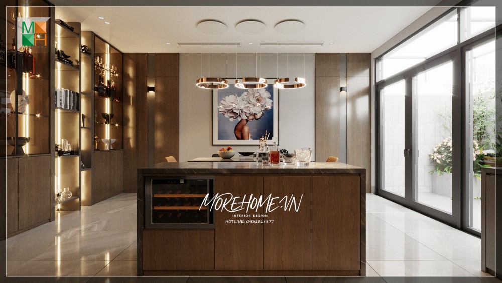 Ngoài ra, một trong những ưu điểm lớn của thiết kế mở là khả năng tương tác giữa các khu vực chức năng trong nhà. Những mảng tường được xóa bỏ giúp cho ánh sáng tự nhiên tràn ngập căn phòng, làm nổi bật vẻ đẹp của nội thất gỗ và tạo cảm giác thoải mái, thư giãn hơn cho gia chủ. Đặc biệt, sự phối hợp giữa các gam màu tự nhiên của gỗ và màu sắc tối giản sẽ tạo ra một không gian hài hòa, lý tưởng để tận hưởng cuộc sống hàng ngày.